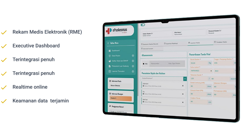 ePuskesmas merupakan sistem aplikasi pelayanan pasien puskesmas yang terintegrasi dan memudahkan transaksi data antar fasilitas pelayanan kesehatan. Dengan fitur keamanan data yang kuat, integrasi BPJS dan SatuSehat, sistem ini mem berdayakan puskesmas untuk memberikan pelayanan yang unggul kepada pasien.